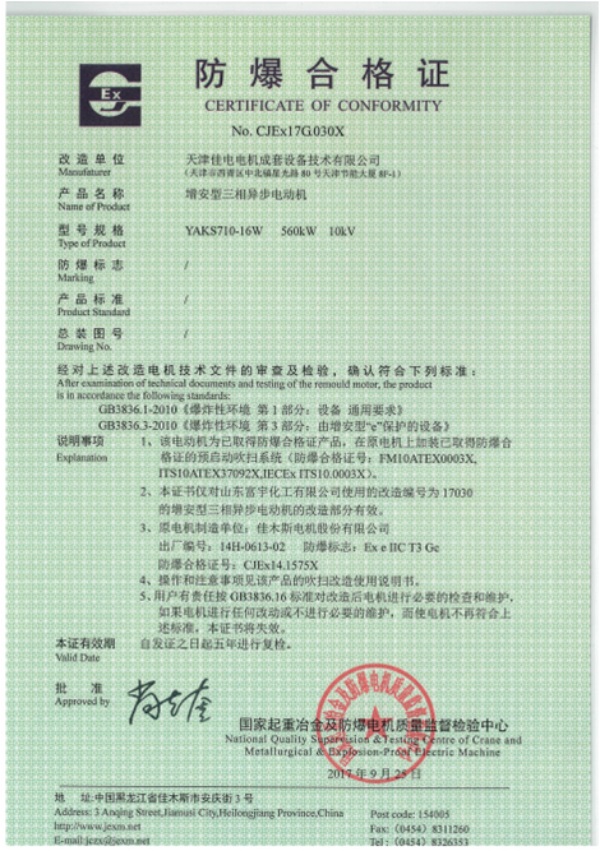 防爆合格证--增安型三相异步电机